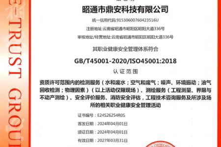 2003年11月10日,昭通市鼎安科技有限公司成立,初始主要從事第三方安全工程技術服務,經多年運營,發(fā)展為多專業綜合科技平臺,為社會提供多種專業技術服務工作。 現公司注冊資金為1200萬元,公司法定代表人:毛衛(wèi)旭。公司主要業務:安全評價、安全標準化評審、安全工程技術服務;環(huán)境監(jiān)測、職業衛(wèi)生檢測、檢驗;法律訴訟及非訴訟服務;司法鑒定、固定資產投資項目節(jié)能服務;工程咨詢;工程測量測繪;安全教育培訓等。是安全生產服務、安全教育培訓機構,也是環(huán)境監(jiān)測和職業衛(wèi)生服務機構,同時也是綜合的檢測檢驗、綜合科技平臺服務機構。多年來為公、檢、法、司、軍、警、海關、仲裁、安監(jiān)、工礦商貿企業、社會團體及個人提供多專業技術服務。